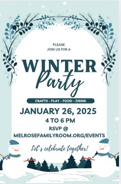 JOIN US FOR OUR GRAND OPENING PARTY AT OUR NEW LOCATION! *** RSVP AND TICKETS REQUIRED *** We are so excited to celebrate the opening of our new room @ Melrose Highlands Congregational Church, 355 Franklin St. Join us for open play, food, drinks, and crafts from 4 to 6 pm. We will have the room open, but also borrowing space upstairs in the fellowship hall. Come get to know our new space and the building and build community with us. Food and drink will be available in the fellowship hall. We plan to order food from a local restaurant or catering, so please RSVP and purchase tickets ($2 each). If your plans change and you cannot make it, please let us know!  Food is being generously provided by MFR member and local realtor, Torin Hanlon. Visit our sponsor’s website at https://www.compass.com/agents/torin-hanlon/  or follow him on Instagram @TorinHanlon. We need volunteers from 3-4 pm for set up and 6-7 pm for clean up. Please email Rachael and Lesley: events@melrosefamilyroom.org  Questions? Email events@melrosefamilyroom.org *** RSVP AND TICKETS REQUIRED ***