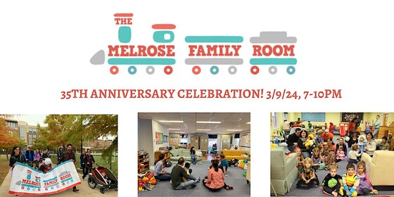 Did you know that the Melrose Family Room is celebrating its 35th year of serving families in the community? All past and current members are invited to celebrate this milestone on Saturday, March 9 from 7:00-10:00 pm at Temple Beth Shalom, 21 East Foster Street in Melrose. The adult-only event is also a fundraiser for the MFR. You can learn more and register at https://bit.ly/MFR35Years. In addition to the event, please check out our online auction at https://www.32auctions.com/MFR. The auction includes more 35 items (see what we did there?!) collectively worth more than $7,000, including unlimited pizza for a year, box seats to the Red Sox, massage/haircut/spa packages, and more. All proceeds from the online auction and 35th anniversary fundraiser will be used to reinvest in the room, expand programming, and to provide room “scholarships” for families in need.